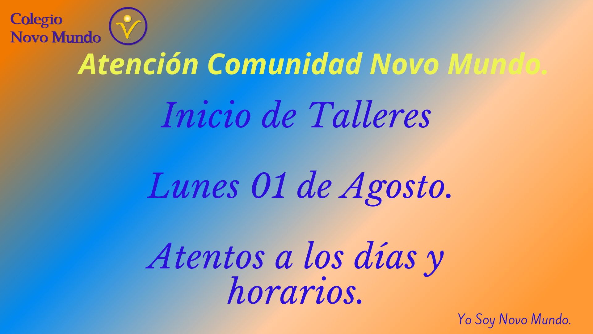 ATENCIÓN COMUNIDAD NOVO MUNDO. INICIO TALLERES SEGUNDO SEMESTRE.