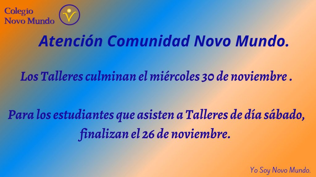 ATENCIÓN COMUNIDAD NOVO MUNDO. LOS TALLERES FINALIZAN EL 30 DE NOVIEMBRE.