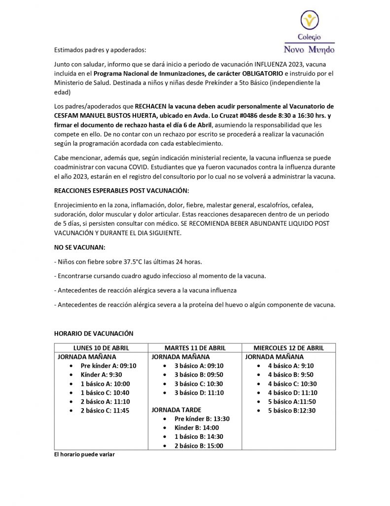 COMUNIDAD NOVO MUNDO INICIA PROGRAMA NACIONAL DE INMUNIZACIONES, DE CARÁCTER OBLIGATORIO. VACUNA CONTRA LA INFLUENZA.