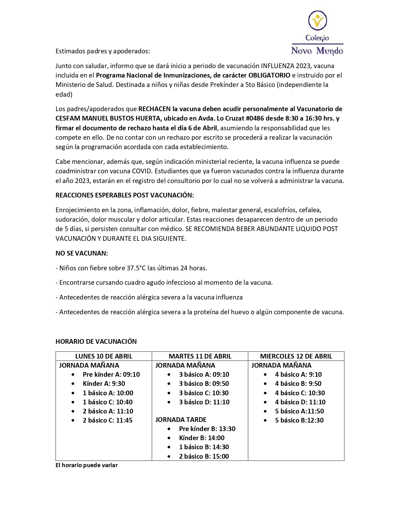 • ATENCIÓN COMUNIDAD NOVO MUNDO. POR RAZONES DE FUERZA MAYOR, EL RETIRO DE ESTUDIANTES JORNADA MAÑANA LUNES 9 DE JUNIO, A PARTIR DE LAS 14:00 HORAS.