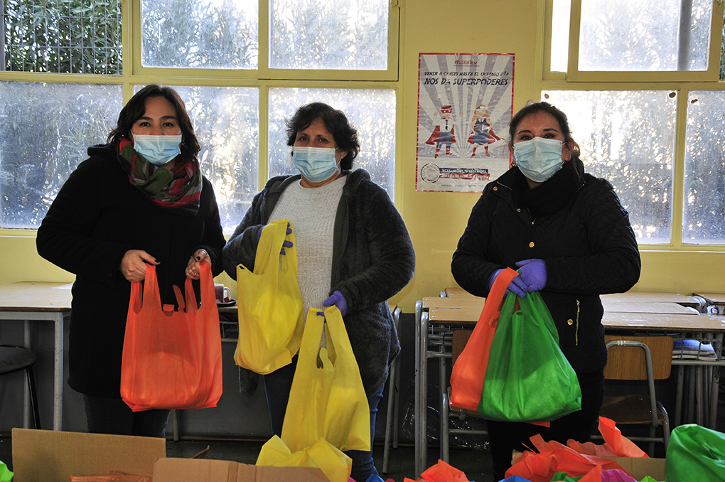 Una grata sorpresa se llevaron los padres y apoderados de los alumnos durante la entrega de la quinta bolsa de alimentos Junaeb, al recibir de manos de los propios funcionarios de la Comunidad Novo Mundo, Kits de aseo personal, para alumnas y alumnos de la Comunidad Educativa.