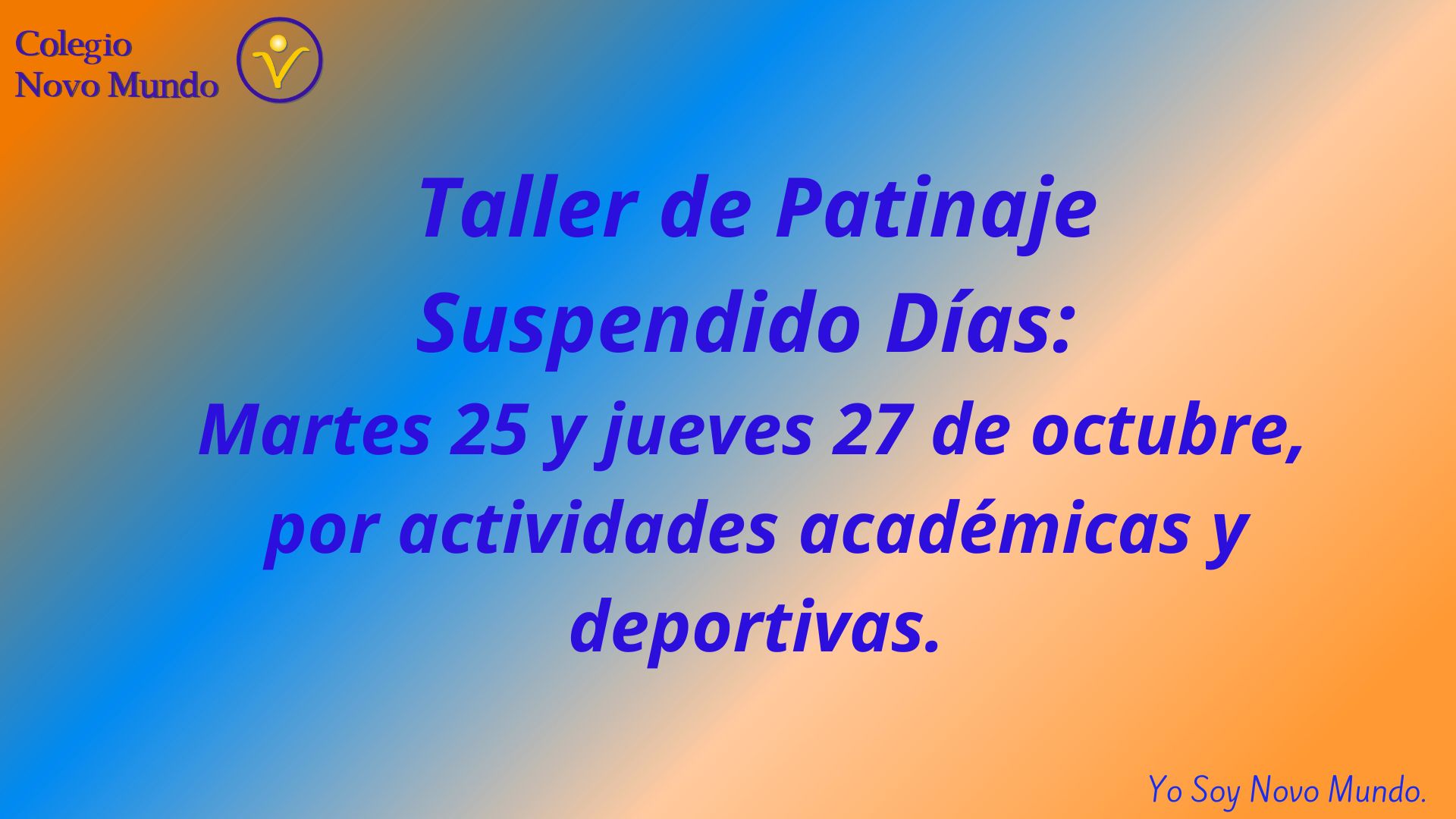 Taller de Patinaje suspendido martes 25, por realización de “Expo Ciencia 2022” y el jueves 27 de octubre, nuestro Colegio será sede COPSU Voleyball varones.